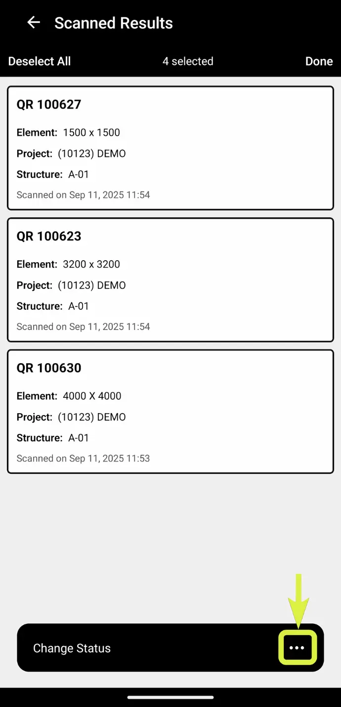 Once all Elements have been scanned, swipe up on the modal to view all the scanned Elements